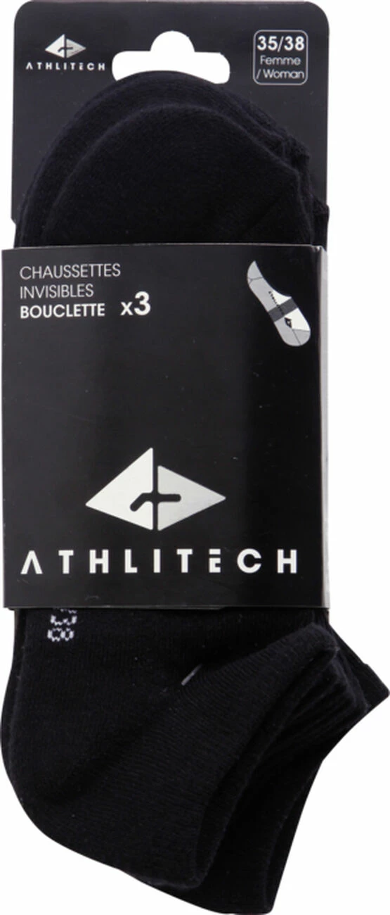 Pack de 3 paires de chaussettes ATHLITECH pour Femme. Invisibles et épaisses. Conçues pour une activité sportive régulière.