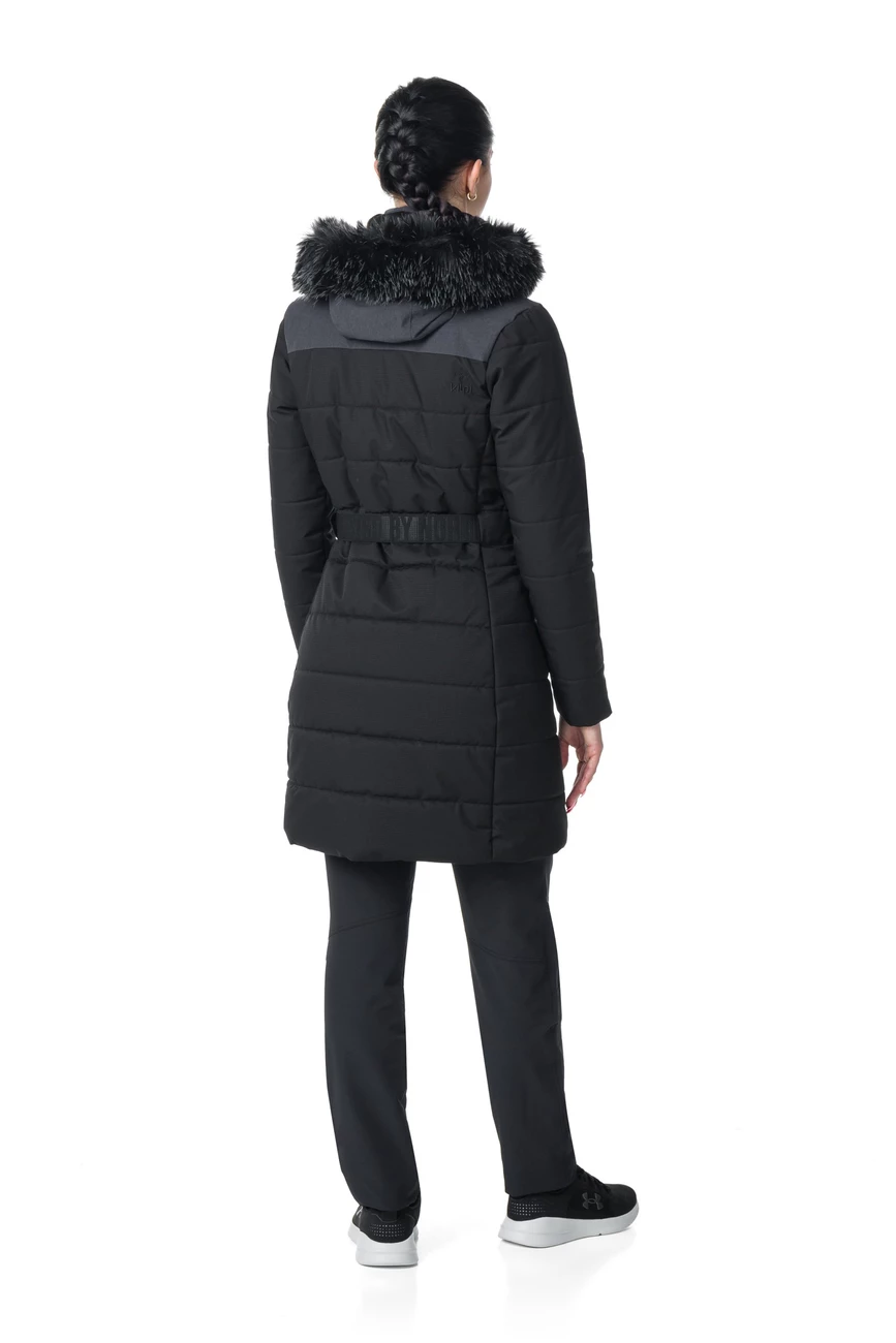 Kilpi KETRINA-W est un manteau d’hiver isolé pour femme jusqu’aux genoux. La capuche est dotée d’un ajustement par un velcro et d’une bordure amovible en fausse fourrure. Il comprend une taille élastique avec une boucle en métal. L’ouverture centrale zippée est recouverte d’une patte de boutonnage et bien sûr il y a deux poches latérales zippées. La matière SIBERIUM avec une imperméabilité d’eau de 10.000 mm/24h/m2 est durable et élastique, le rembourrage synthétique du pelage est léger, doux et agréablement chaud.
