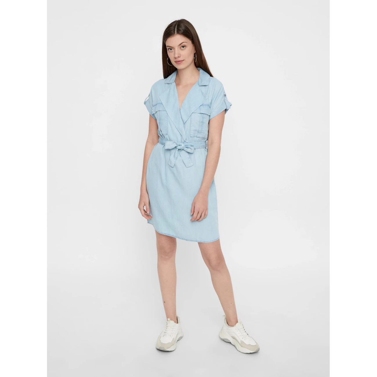 – mini robe avec ceinture enveloppante.- coupe régulière.- matière lyocell douce.- poches poitrine.- détails de boutons à l’encolure et aux manches.- longueur : 93 cm en taille s.- le modèle mesure 177 cm et porte une taille s.mini robe avec ceinture enveloppante à la taille, poches poitrine et détails de boutons à l’encolure et aux manches. portez la robe avec des baskets blanches en été.